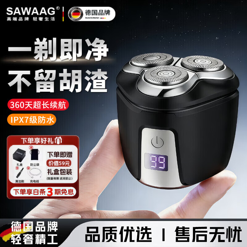 飒望【情人节礼物】德国剃须刀电动男士2025新款剃须刀热卖第一便携迷你小钢炮全身水洗浓密胡须不留黑 武士黑【礼盒装】干湿双剃/柔和亲肤/敏感肌适用 剃须刀男士刮胡子最干净的/新年礼物送父亲男友