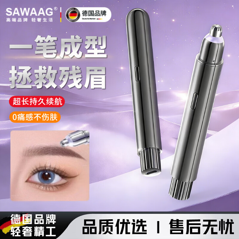 飒望电动修眉笔全自动修眉仪新款充电款刮眉刀女士专用修眉神器懒人眉毛修剪器迷你便携多功能小白必备 【枪灰色】 抗菌精钢刀头/安全不伤肤/超长续航