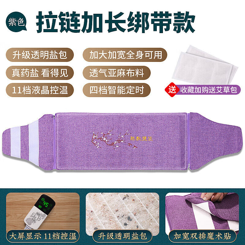 JCZS海盐热敷包电加热理疗全身适用 【加长绑带紫】全配置+档控温+智能数显定时+3