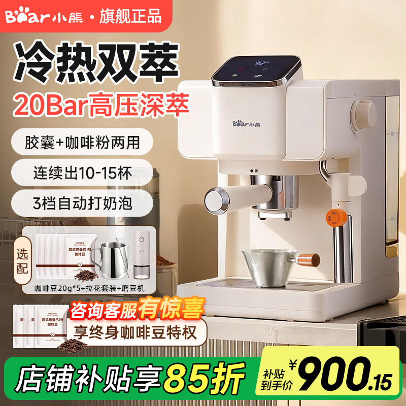 小熊(Bear)咖啡机20Bar半自动意式冷热双萃免预热家用小型礼物胶囊咖啡粉两用 KFJ-E12T3【套餐1】