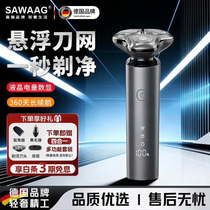 飒望【情人节礼物】德国剃须刀电动男士2025新款9系便携数显双环三头刮胡刀全身水洗干湿两用送男朋友 【三头MAX款】灵动刀头+全身水洗+60天超强续航 剃须刀热卖第一/剃须刀男士刮胡子最干净的