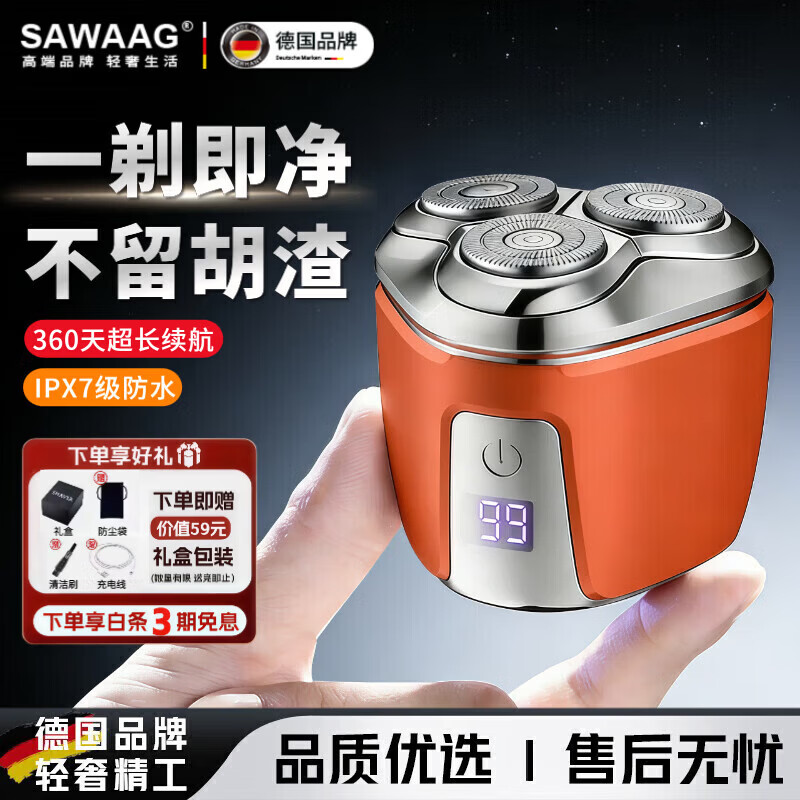 飒望【情人节礼物】德国剃须刀电动男士2025新款剃须刀热卖第一便携迷你小钢炮全身水洗浓密胡须不留黑 炫酷橙【礼盒装】干湿双剃/柔和亲肤/敏感肌适用 剃须刀男士刮胡子最干净的/新年礼物送父亲男友