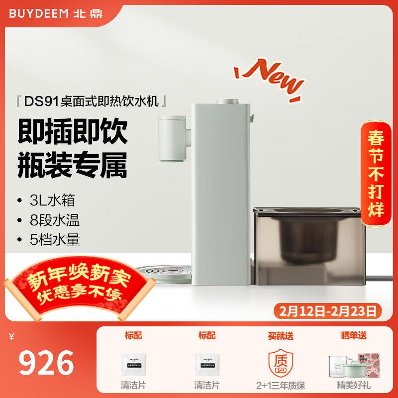 北鼎(Buydeem)即热饮水机 家用速热式水机 桌面台式茶水机 办公室小型迷你智能饮水器冲泡奶神器DS95 3L水箱 【新品】DS91饮水机+水瓶座套装 即热型 浅杉绿
