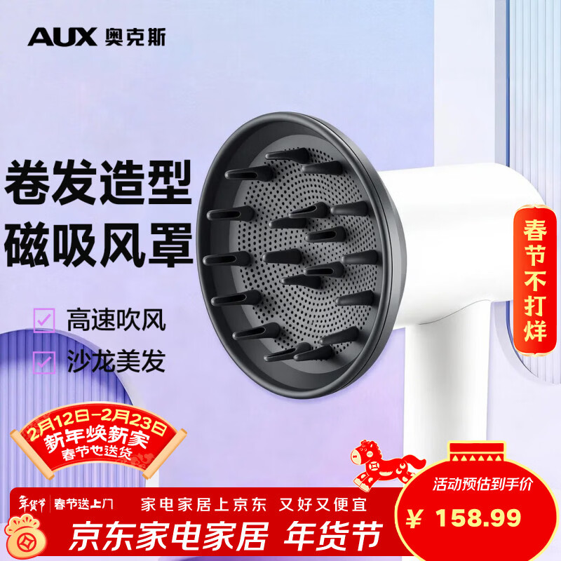 奥克斯(AUX)风罩卷发吹风机烘干罩吹卷发造型神器高速护发电吹风美发沙龙级电吹风机吹发卷发二合一情人节礼物 【白色款】卷发风罩+高速吹风