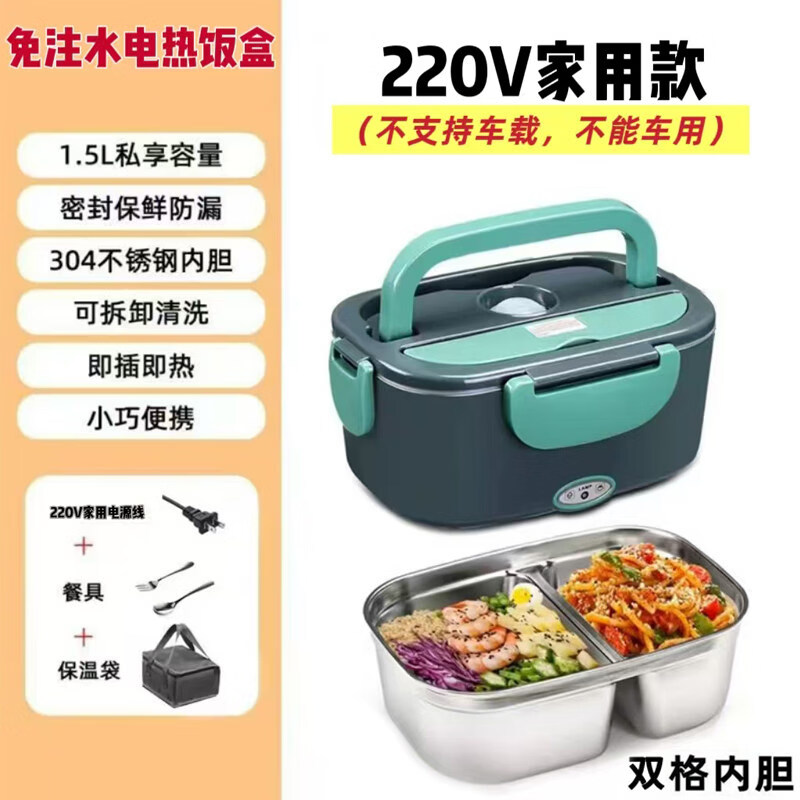小米宝宝多功能电热饭盒车载12V24V不锈钢内胆家用上班族插电加热保温饭盒 1L 220V家用款【墨绿色】
