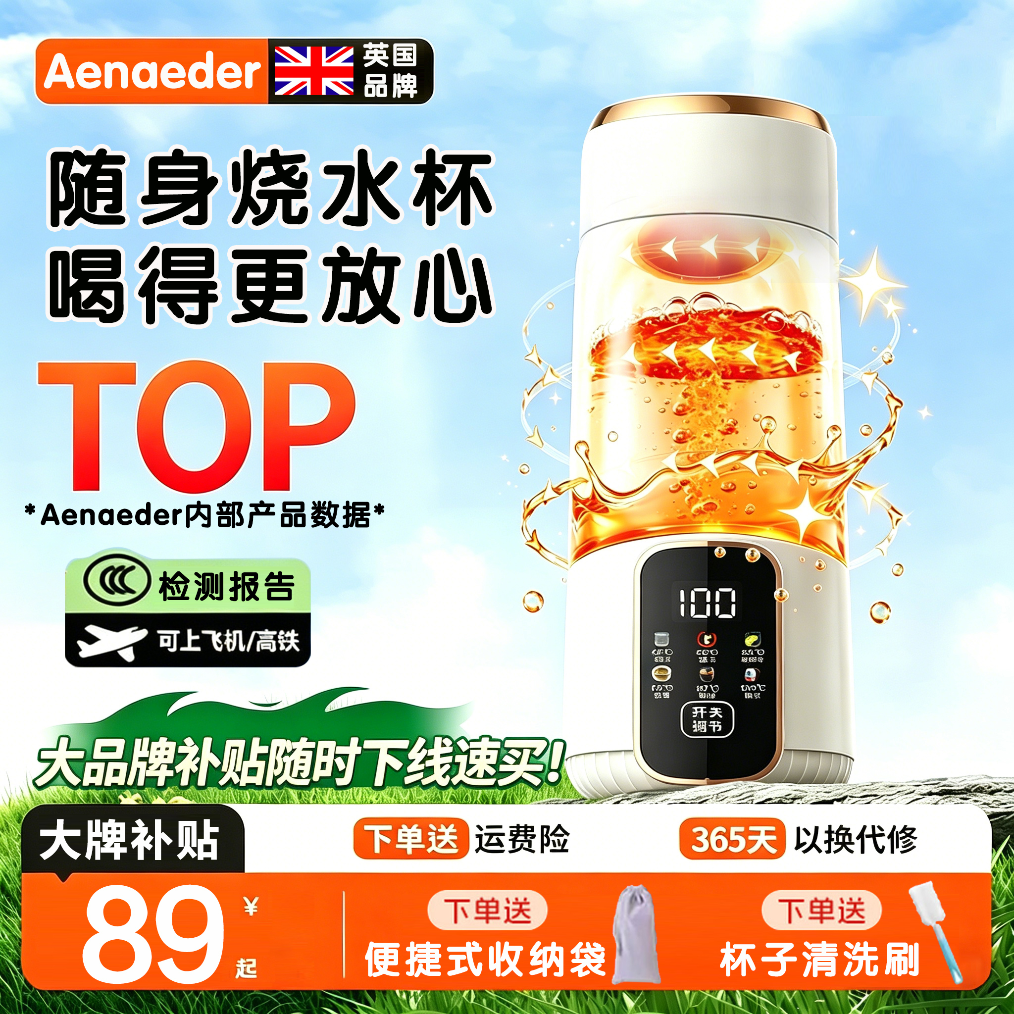 Aenaeder【英国】便捷电热水杯旅行家用烧水杯加热杯迷你小型恒温电热水壶出差户外热水杯冲奶泡奶器 0.6L 6大功能+316内胆+24h恒温