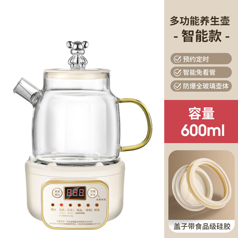小米宝宝全自动迷你养生壶办公室小型煮茶器多功能家用玻璃烧水壶小巧 智能款(全玻璃 底无胶圈) 0.6L
