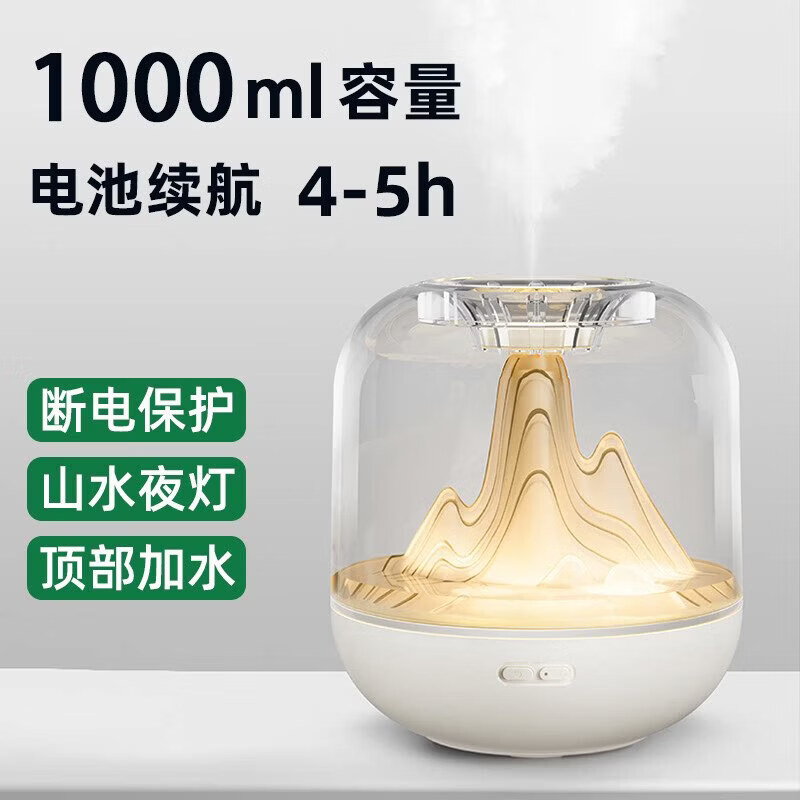 小米宝宝2025年新款加湿器家用卧室办公室桌面无线孕妇婴儿空气精油香薰氛围灯小型迷你夜灯宿舍学生大雾量 白色意境山水-炫彩夜灯【1000ml大容量】