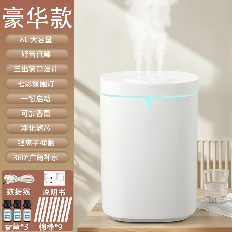 小米宝宝加湿器家用卧室香薰机静音超大喷雾大容量办公桌面小型母婴 豪华款三喷+8升大容量+七彩呼吸灯9棉棒+3香薰