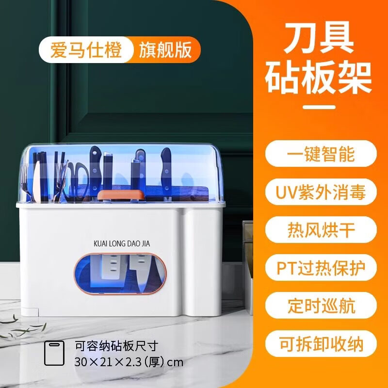 小米宝宝刀架筷子笼一体消毒烘干刀具砧板筷子厨房收纳盒家用多功能置物架 防尘+紫外线消毒款【经典橙色】(不含刀具菜板) 质