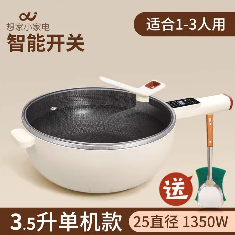 小米宝宝5电炒锅蜂窝不锈钢不粘锅家用一体火锅电煮锅煎炒菜锅蒸锅3宿舍 3.5智能单机款(可用铁铲)1-3人用