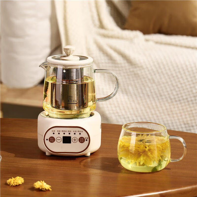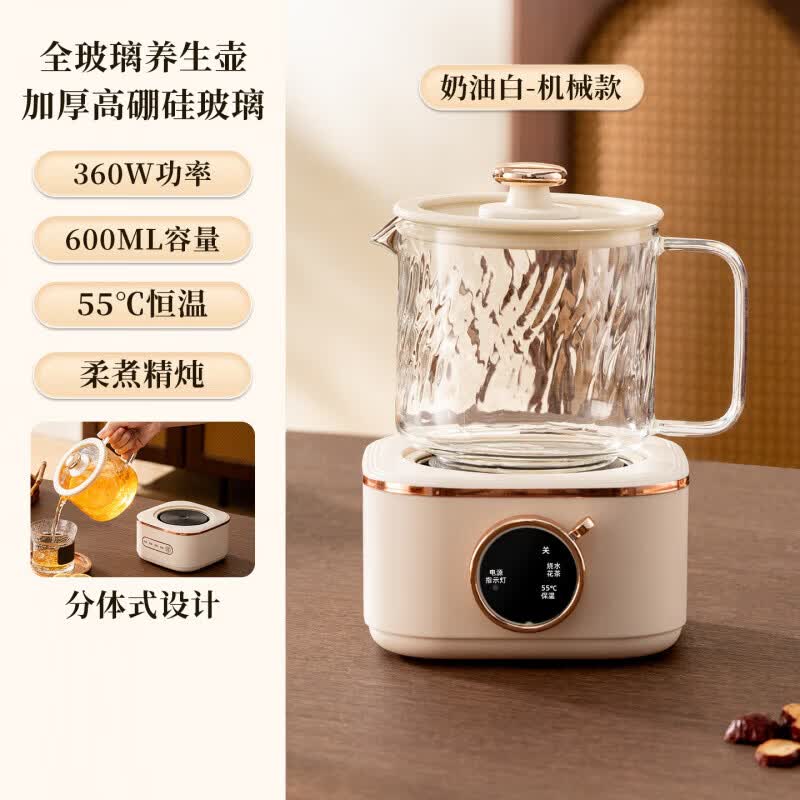 小米宝宝多功能家用养生壶办公室小型花茶壶宿舍低功率烧水壶煮茶器送礼 高雅白旋钮底座+壶 0.6L