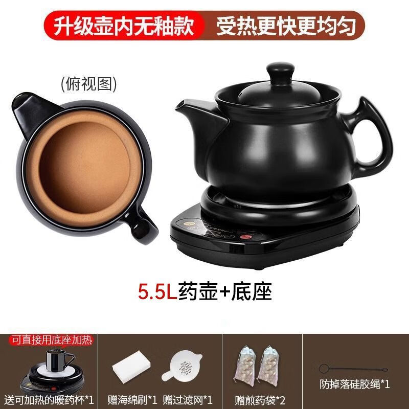 壶福(HF)【轻松煎药】分体式煎药壶全自动药罐家用熬药定时电热药罐 【黑色无花纹】无釉款5.5L+底座+礼包 1L