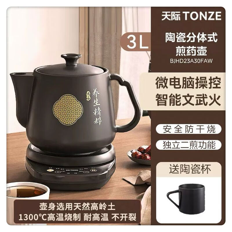天际全自动分体煎药壶中药壶家用陶瓷煎中医砂锅电中熬药罐机配件 3L分体中药壶整套预约*二煎*暖药按钮*功率500W*送杯