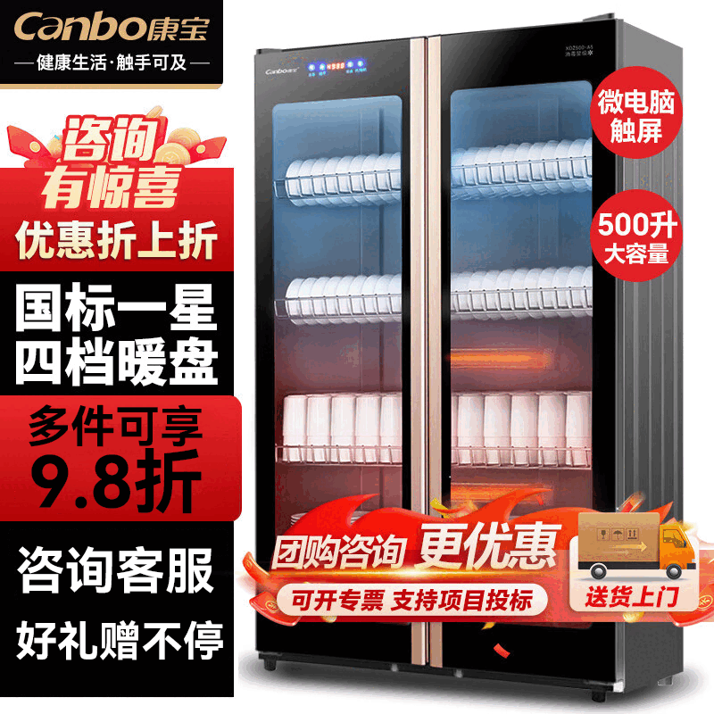 康宝(Canbo)商用双开门立式大容量消毒柜餐饮食堂饭店厨房餐具烘干碗筷柜 无星级 1L 一星级500L四档暖碟XDZ500-
