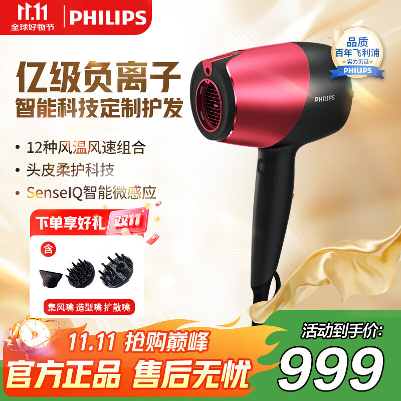 飞利浦(PHILIPS)电吹风机家用大功率速干吹风筒负离子护发 6大智能模式 SenseIQ智能微感应 BHD287