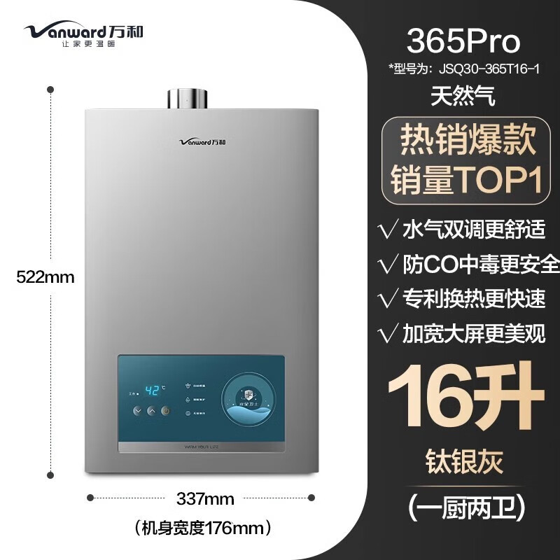 万和(Vanward)新品4A级变频气恒温燃气热水器家用水气双调洗澡A3 PRO JSQ30-365T16-1钛银灰 实惠就在 名 天然气