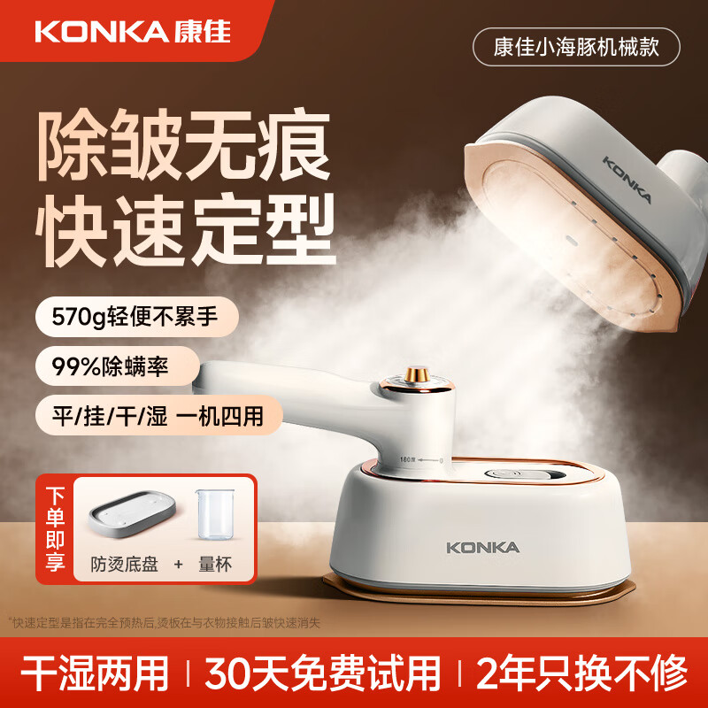 康佳(KONKA)挂烫机可携式小型蒸汽手持熨斗家用衣服除皱熨烫干湿两用 增压蒸汽+五档调温+多种面料可用 白
