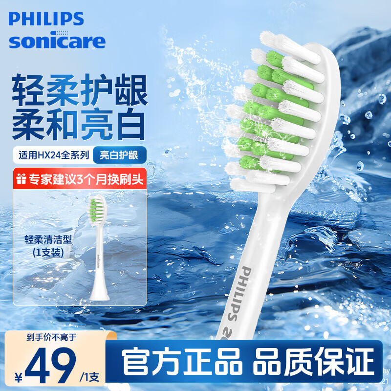 飞利浦(PHILIPS)电动牙刷头电牙刷替换头适配HX2421/HX2431/HX2451/HX2461/HX2462/HX247/1HX2482 1支 【HX2031/02】
