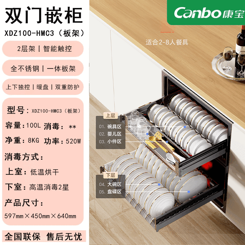 康宝(Canbo)嵌入式消毒柜高温二星级家用HMC3全不锈钢一体板架烘干一体柜 二星级 100L HMC3不锈钢板架款