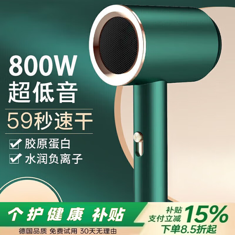 戴森德乐吹风机家用静音负离子大功率不伤发学生宿舍便携吹风筒理发店专用大风力高速干降噪护发电吹风 绿色800w学生宿舍 胶原蛋白+水润负离子