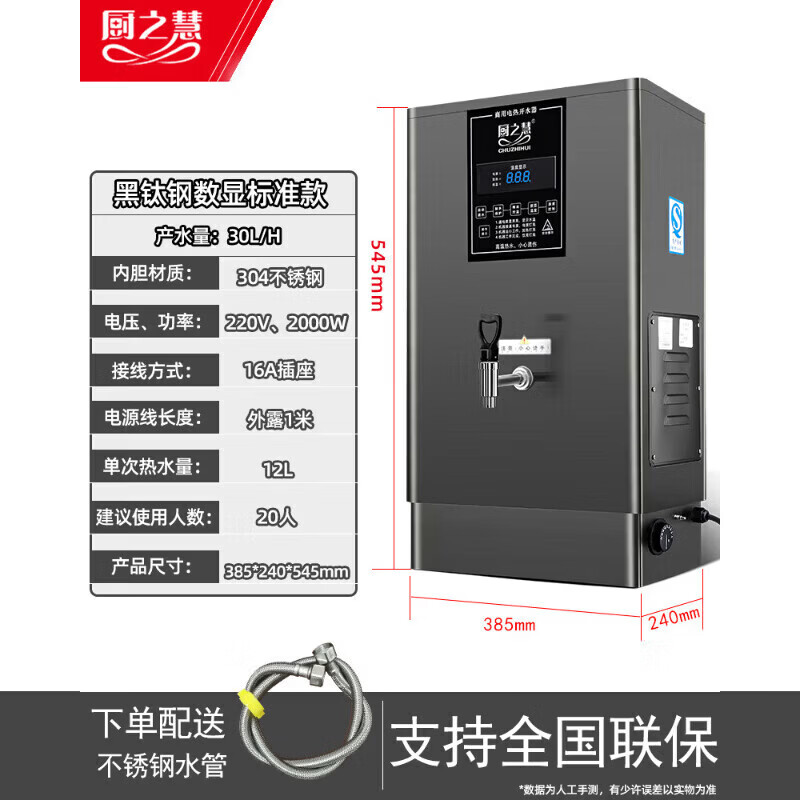 厨之慧商用全自动电热烧水器 工厂酒店食堂办公大容量开水机 黑钛数显-30L/h-2KW-220V标准款