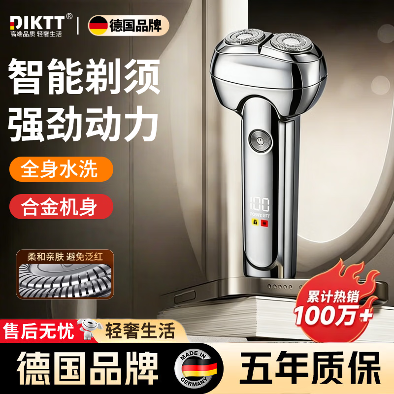 DIKTT德国电动剃须刀便携全身水洗干净不留黑点男士刮胡刀强力干净不留胡渣最新款送男友父亲礼物2026款 闪耀银【一遍秒剃净深层剃须无残留】