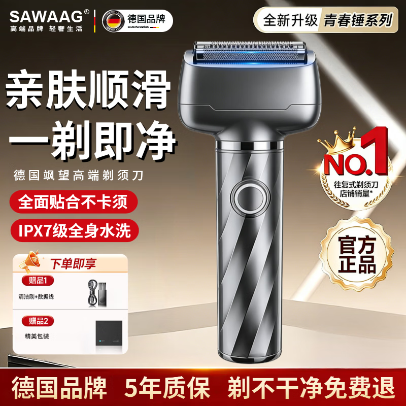 飒望德国剃须刀男士电动2026新款往复式小锤子刮胡刀电动便携迷你刮胡刀热卖第一全身水洗送男友父亲 【往复式亮银色】精钢三刀头 一遍剃净 周年纪念日生日礼物送男生男友老公父亲