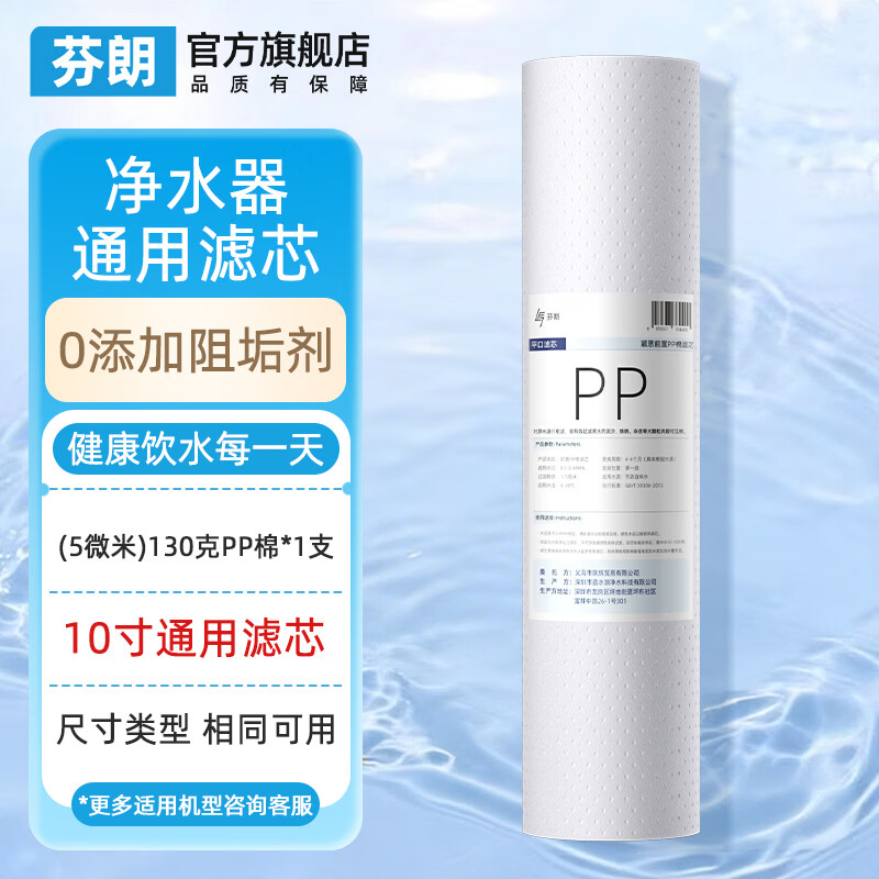 芬朗净水器滤芯10寸通用五级PP棉100G反渗透RO膜前后置活性炭滤芯CTO/T33家用过滤器纯水机UDF配件 【10寸通用】平口前置PP棉滤芯(PPF)*1支