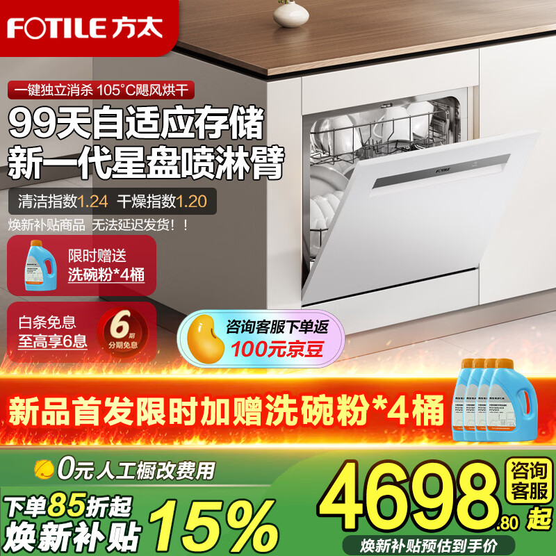 方太(FOTILE)【新品】洗碗机03-B-N10 嵌入安装 嵌入式 灵巧换装首选 四重消杀 渣水强排 一级水效 补贴15% 嵌入式 新品 白色 03-B-N10