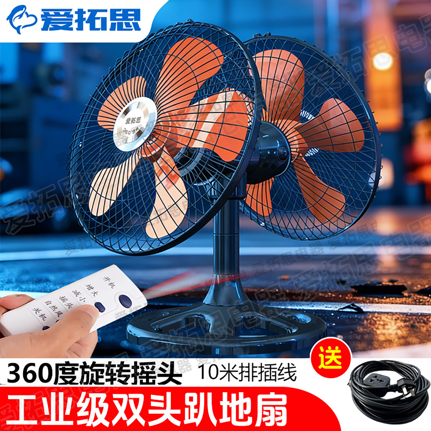 爱拓思工业风扇趴地扇360度旋转摇头饭店大排档烧烤趴地电风扇强力商用台地扇大功率双头风扇工厂坐地扇 18寸橙色-旋钮+遥控款(703)