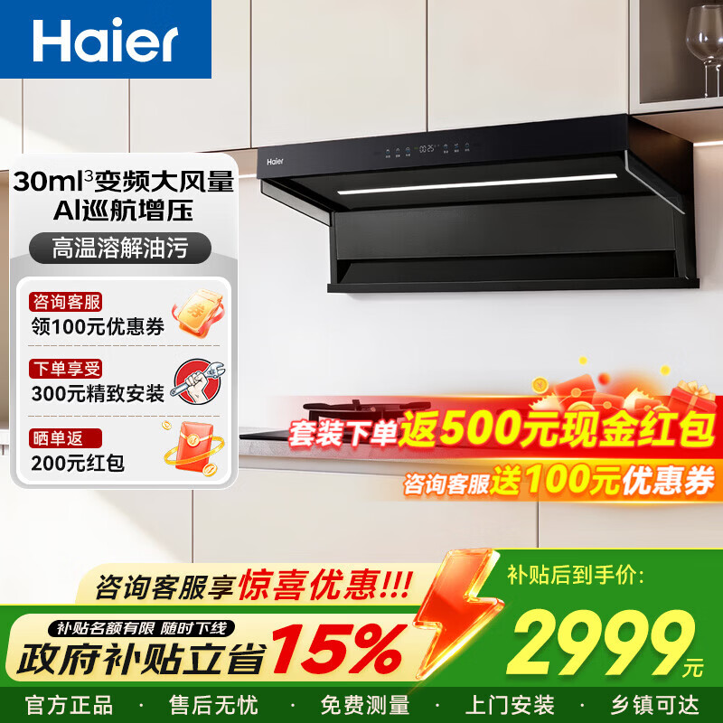 卡萨帝小炫风max2.0静音油烟机 原石小旋风吸油烟机套装家用 上门安装以旧换新 32风量大吸力 搭黑定时灶