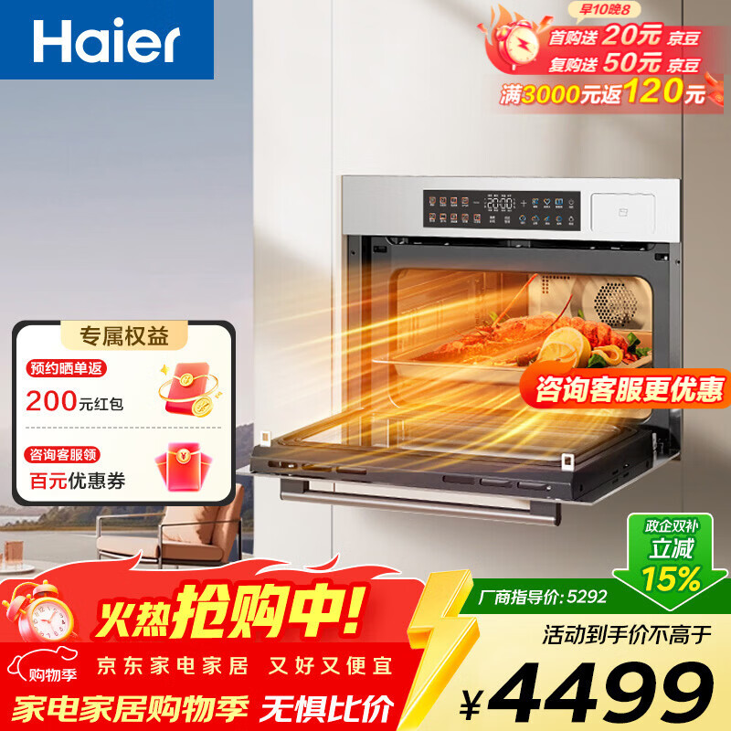 海尔统帅懒人系列全能王V1 嵌入式微蒸烤一体机 多功能7合1 变频大蒸汽 6档微波 家用熏烤 上门安装 52L蒸烤炸炖熏烘一体机