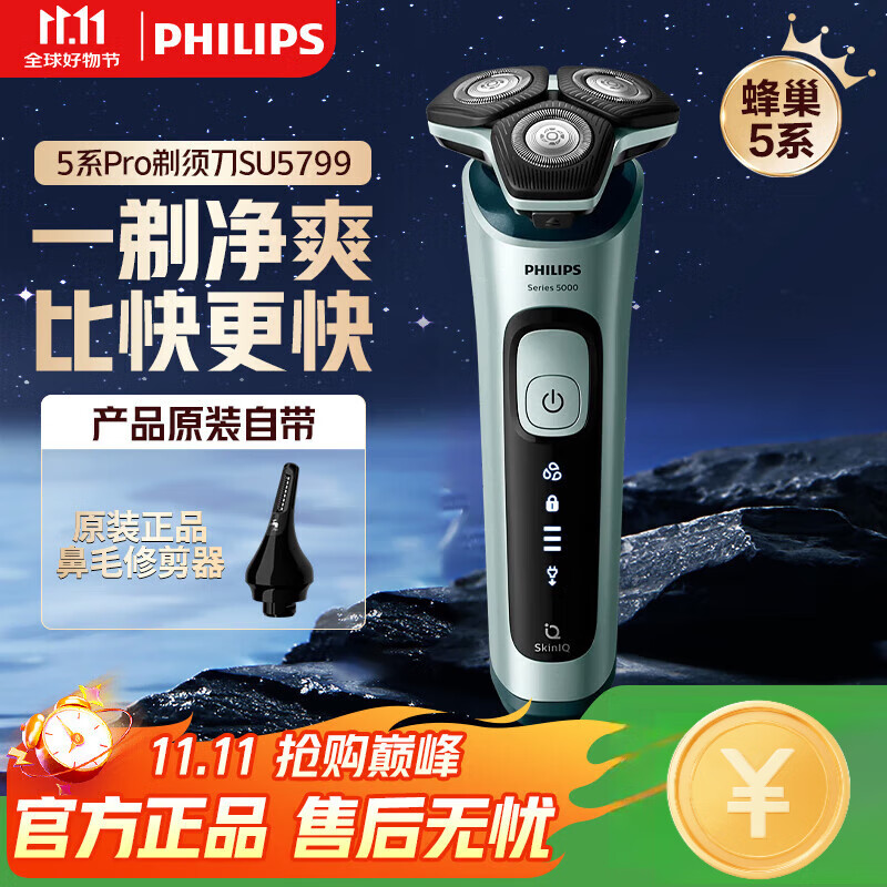 飞利浦(PHILIPS)剃须刀电动亲肤5系剃胡刀刮胡刀三刀头1小时快充胡须刀生日礼物送男生送长辈 SU5799/06蜂巢5系pro