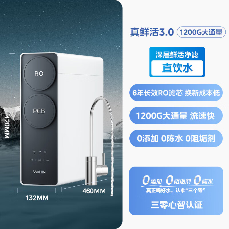 美的(Midea)[0阻垢剂]出品华凌真鲜活1200g家用净饮水机器新款RO反渗透 黑色_1200G