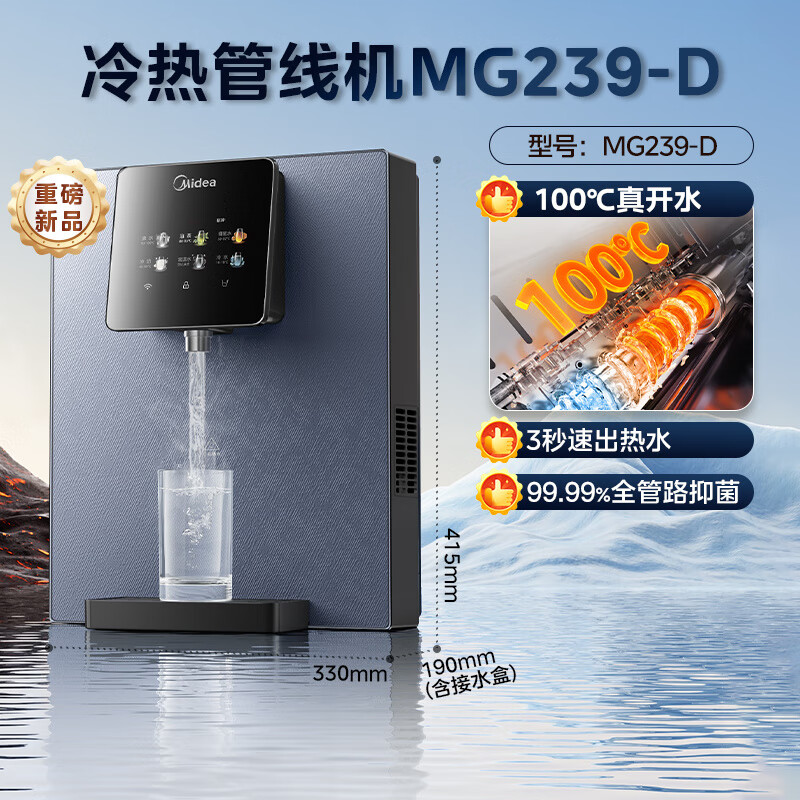 美的(Midea)管线 线机壁挂式瞬热饮水机直饮净水器制冷新款239-D 藏青色_MG239-D_冰热管线_线机