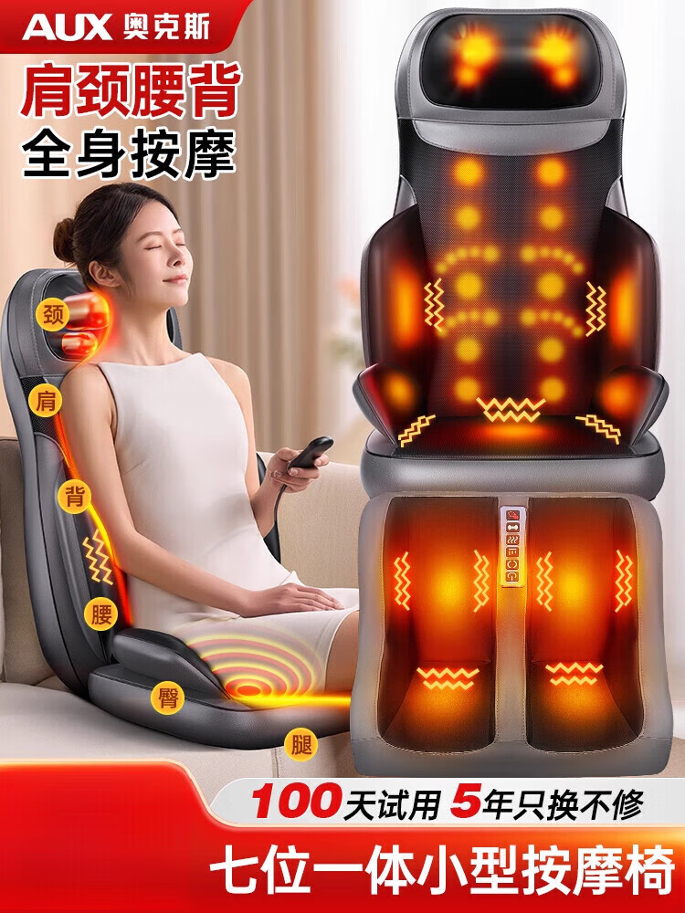 奥克斯(AUX)按摩椅全身家用小型全自动多功能按摩器背部腰部颈椎仪靠垫 【标准款】8组按摩头 恒温热敷