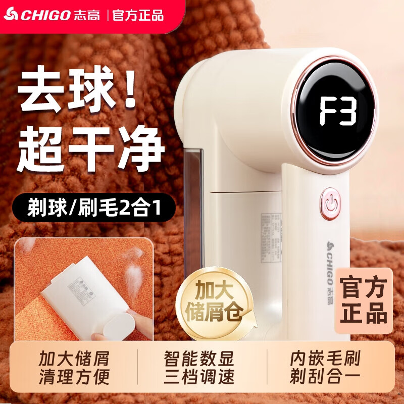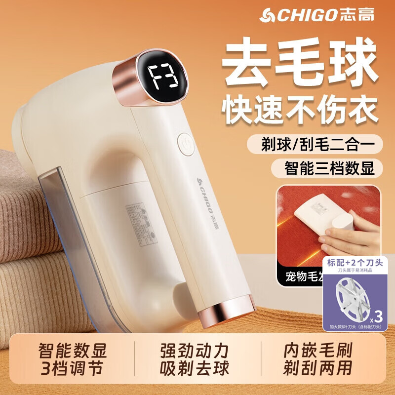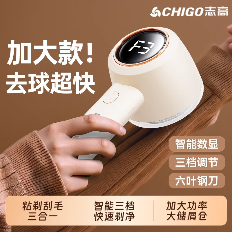 志高(CHIGO)剃毛器衣服去毛球修剪器起球家用不伤毛衣清理神器打吸除刮毛 二合一标配款【剃刮两用+屏显3挡调节+18W大功率