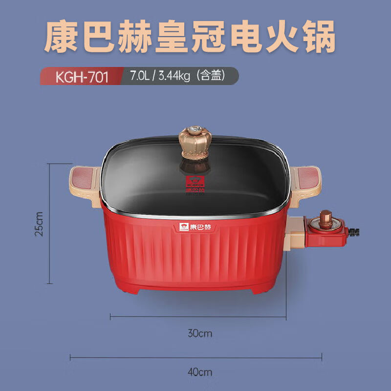 康巴赫多功能鸳鸯电火锅蒸煮锅家用煎炒菜锅电煮锅烧烤锅大容量 7L-康巴赫皇冠多功能电火锅