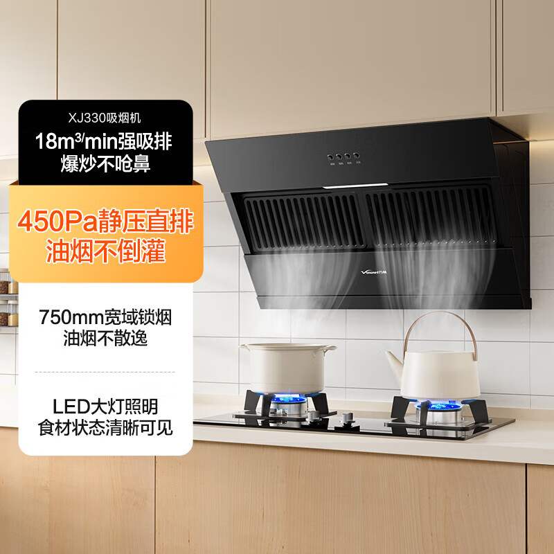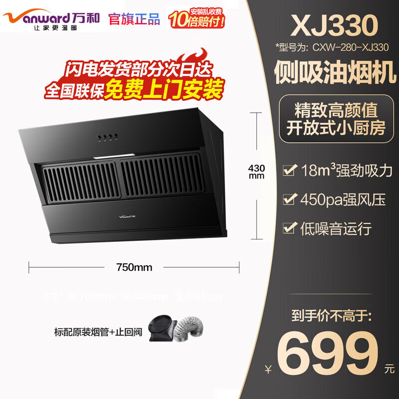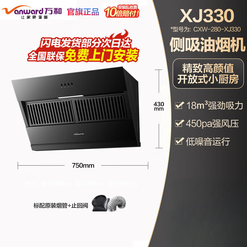 万和(Vanward)【】抽油烟机小尺寸大吸力家用吸油烟机店 XJ330 18m³/min 黑色 带其它配件