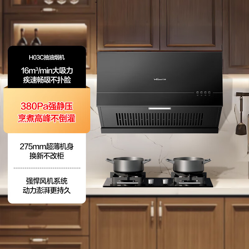 万和(Vanward)油烟机厨房小型大吸力新中式抽油机出租房烟机H03C H03C 16m³/min 黑色 带其它配件
