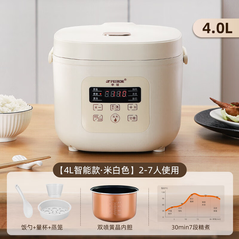 半球新款电饭煲家用电饭锅多功能2人-3升预约蒸煮饭智能不粘煮锅 智能款【适用4-7人】双喷直胆 4L