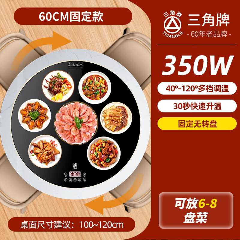 Tangle Teezer三角牌暖菜板热菜板保温板家用多功能火锅电动转盘餐桌 【60cm】无转盘
