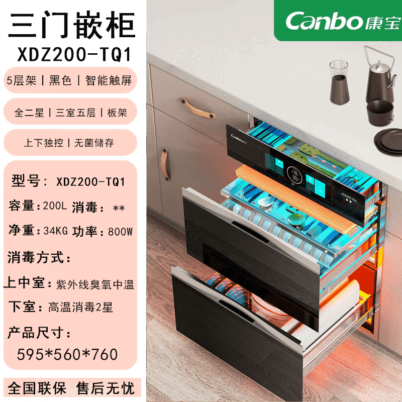 康宝(Canbo)TQ1磐石嵌入式大容量消毒柜不锈钢家用餐具碗筷全二星级消毒 二星级 200L TQ1 三室五层