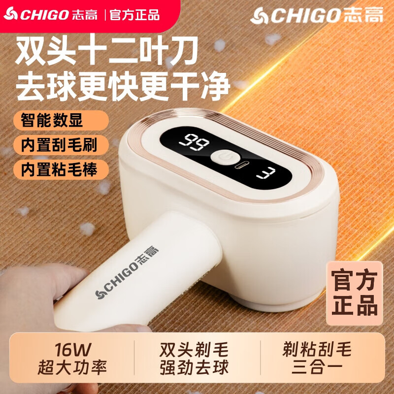 志高(CHIGO)毛球修剪器剃毛器衣服起球去毛器粘剃刮毛衣除毛器去毛球神器 【双头双屏显+超强大功率+加大储毛仓】