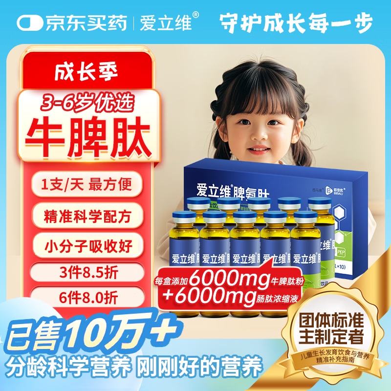 爱立维脾氨肽600mg牛脾肽3-6岁儿童成人免冲疫力调鸡内金口服液理脾胃