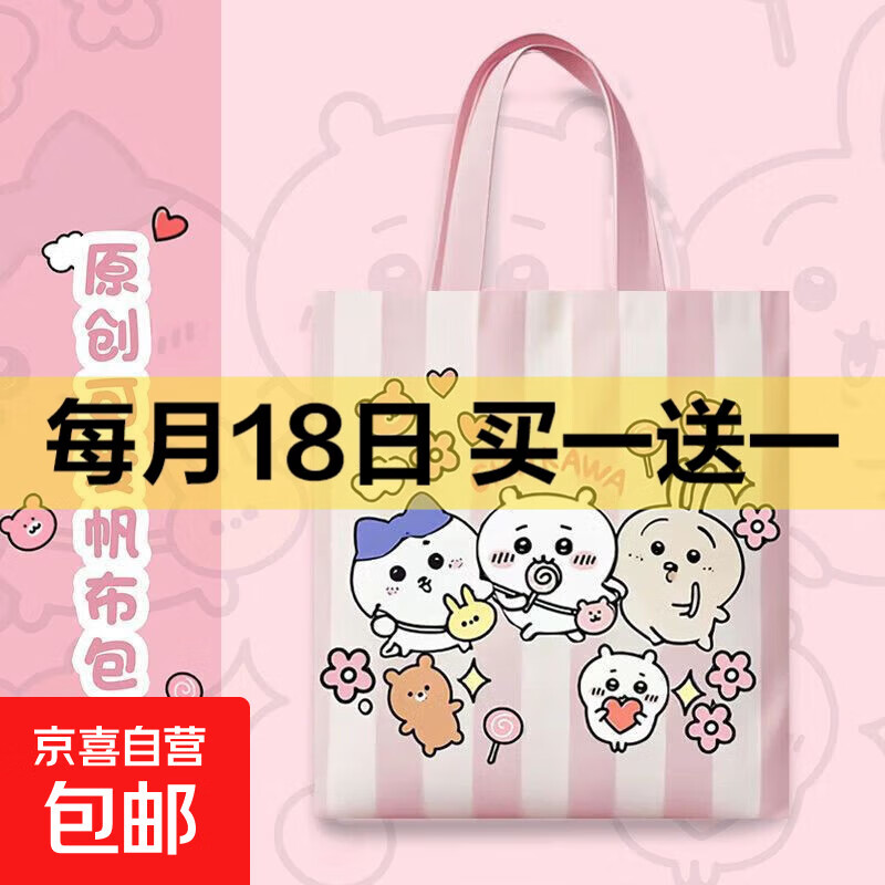 单肩包吉伊卡哇帆布包女生可爱新款大容量学生补习袋手提拉帆布袋 吉伊卡娃粉色【材料升级】