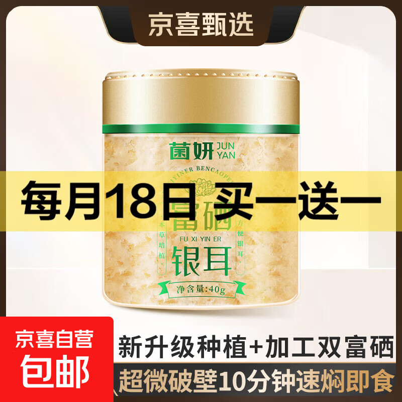 【限时特惠】菌妍双有机本草银耳免洗古田干货冻干银耳羹冲泡即食 【富硒银耳】8分钟出胶40克*1罐