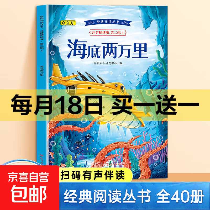 【赠品自选 备注无效】经典阅读丛书第一二三四五辑小学生课外阅读书注音精读有声伴读 第二辑:海底两万里 单册 无规格