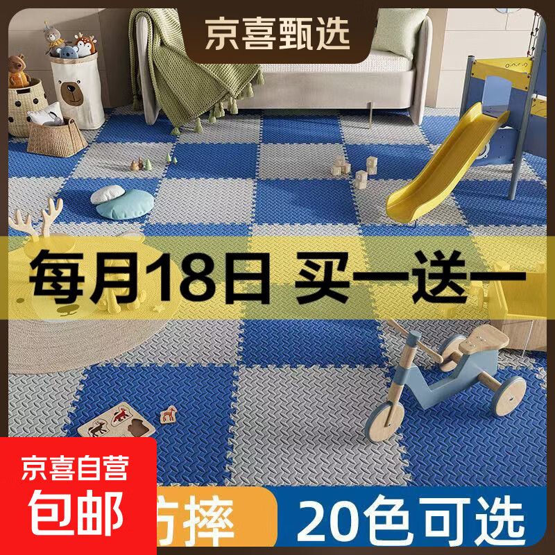 卧室地垫拼接泡沫地垫床边客厅铺满爬爬垫EVA加厚防滑正方形地垫 蓝色 【限时价】约1.0cm厚30*30cm树叶纹/6片